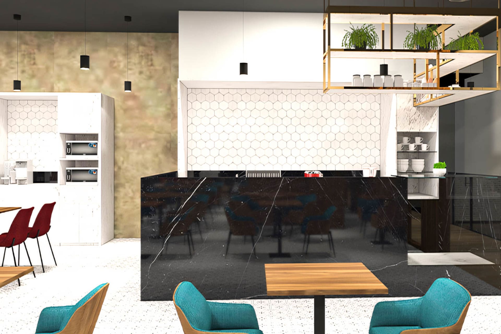Reserved desk, shared amenities